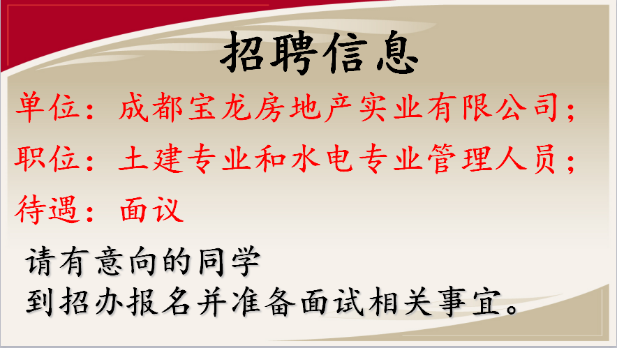 根据公司发展需要,现公开招聘土建专业和水电专业技术管理人员,要求如下: