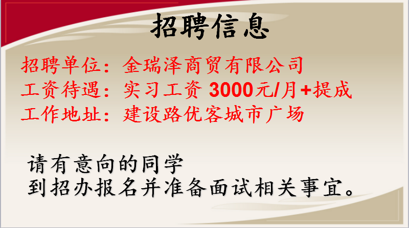 金瑞泽商贸有限公司招聘信息